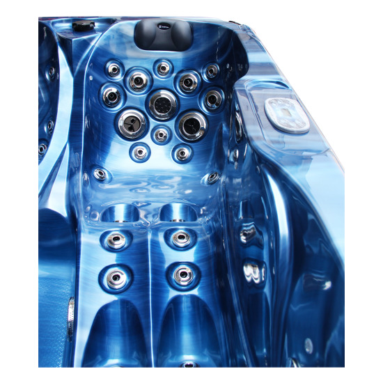 На этом эргономичном спа-шезлонге даже крупный пользователь сможет почувствовать себя расслабленно и удобно, а также, отрегулировать массаж от мягкого и деликатного до мощного - по своему усмотрению. Вертикальная большая форсунка закручивает струю воды по всей нижней части спины и поддерживается множеством небольших и средних, частично вращающихся сопел от верхней части спины до ног. Воздушные форсунки, с предварительно нагретым воздухом, насытят кожу кислородом. Эффективный массаж ног шестью форсунками - завершит массаж всего тела.
